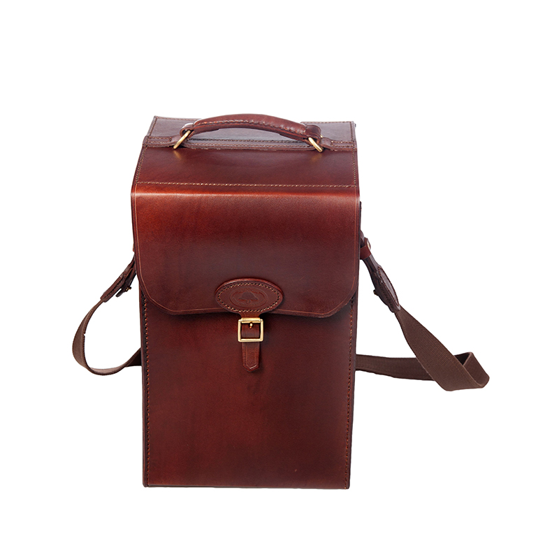 Vegetable tanned leather case with four inner compartments, high enough to take most bottles, it fits two flasks and space for all the ingredients for a coffee stop anywhere en route. Ideal for picnics, game drives and just general transport of your chosen drinks. Takes 2 Flasks (not included).
