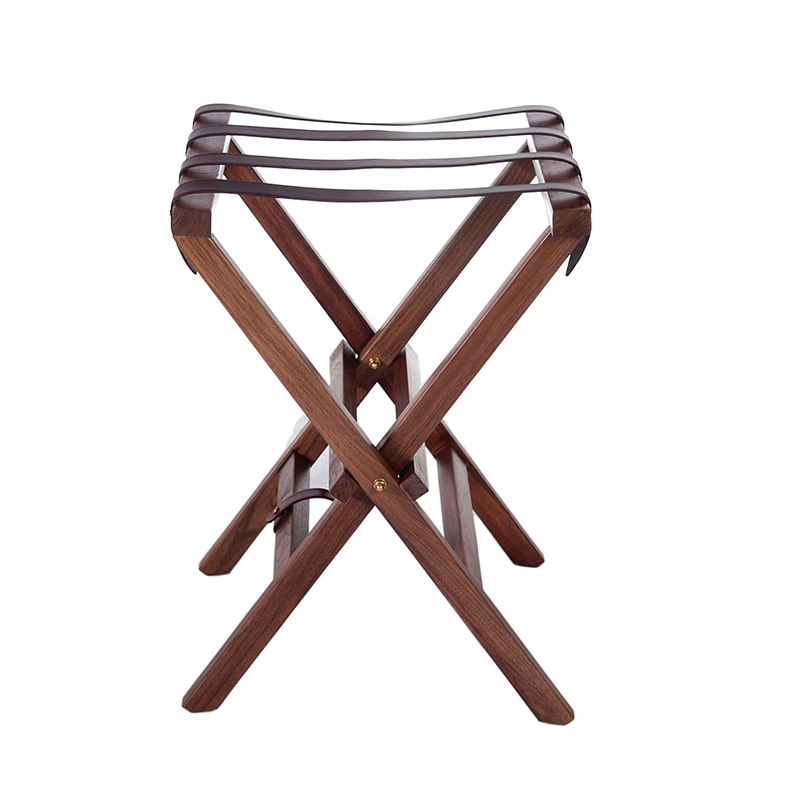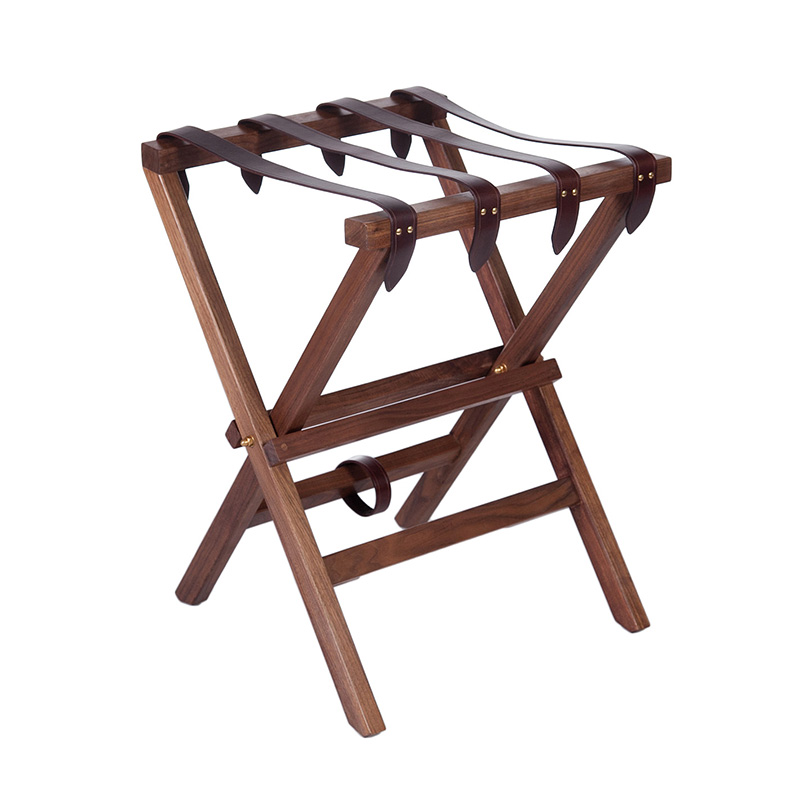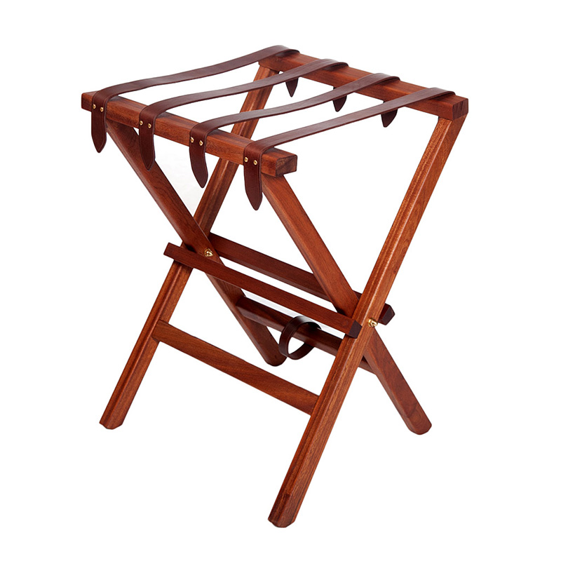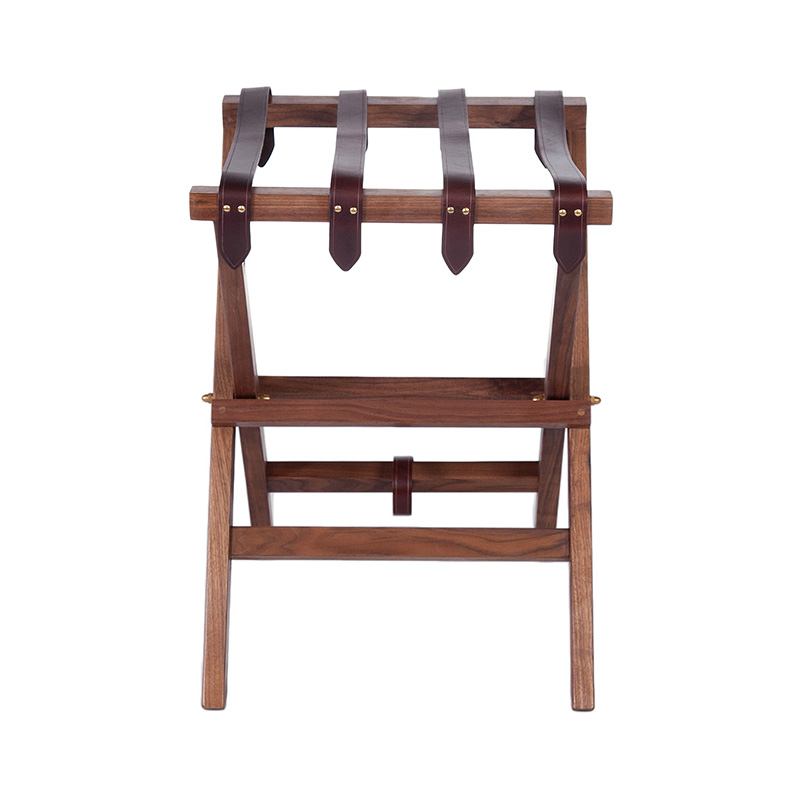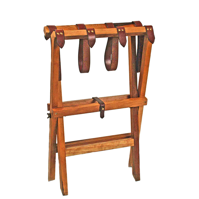 A most useful accessory in Lodges and Safari tents. Supports a full size suitcase – (opened or closed), any one of our classic pieces of Safari luggage, even a butler’s tray. A foldaway leather strap enables our rack to be stored flat in a cupboard or behind a door.