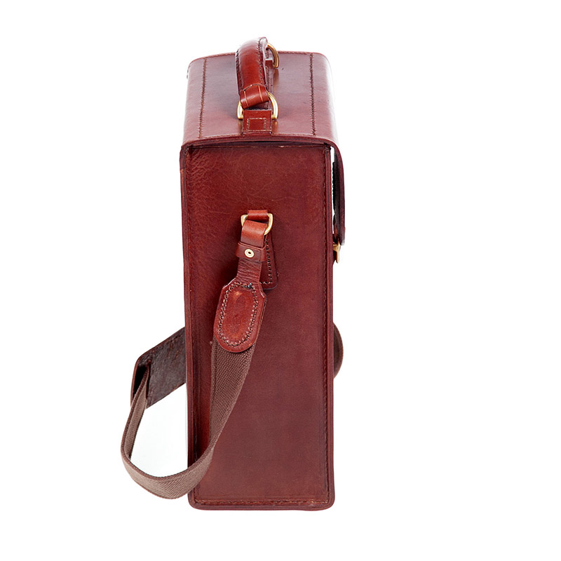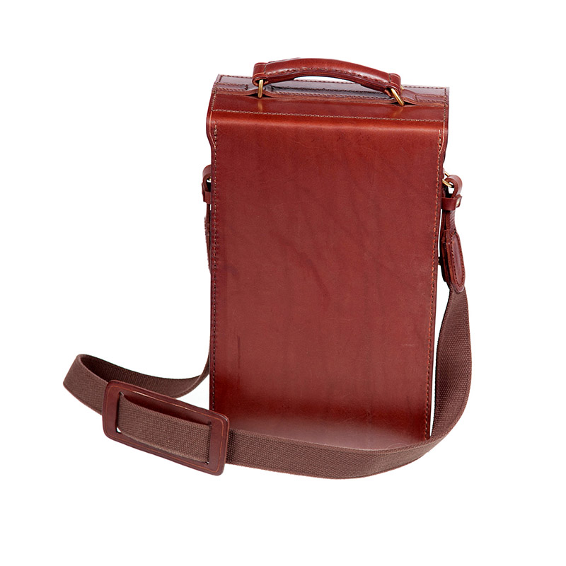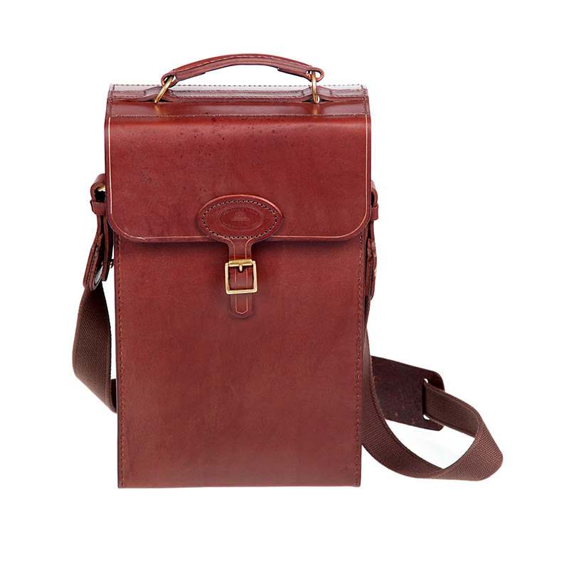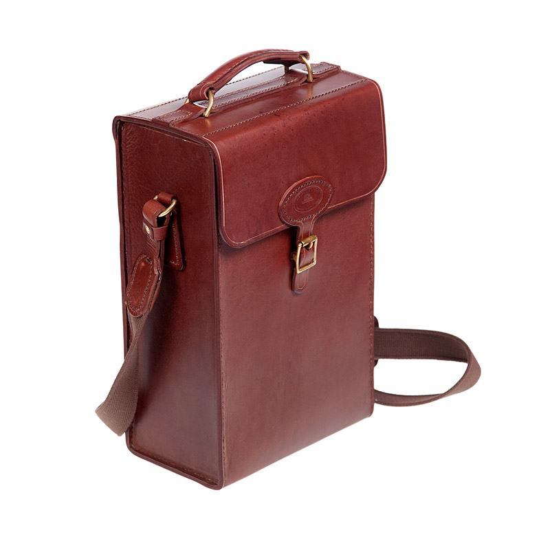 A 2 bottle wine carrier made with traditional vegetable tan leather and solid brass fittings.