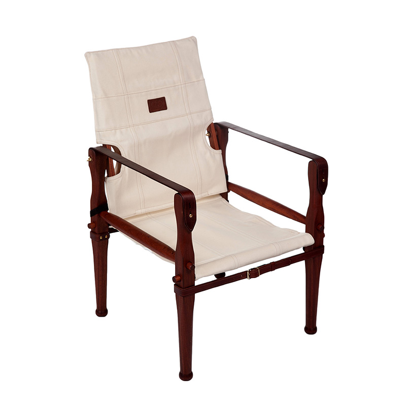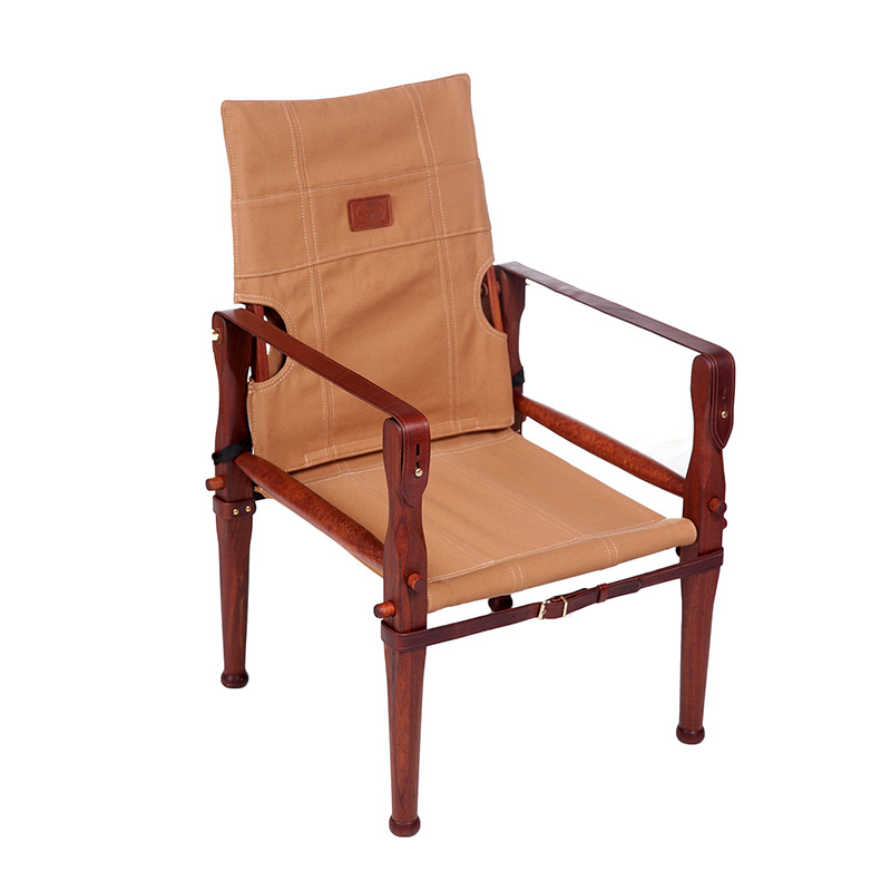 The iconic collapsable campaign chair with a long a) military b) exploration c) safari provenance. Extremely durable and portable on Safari and stored in a handy carry bag when on the road.