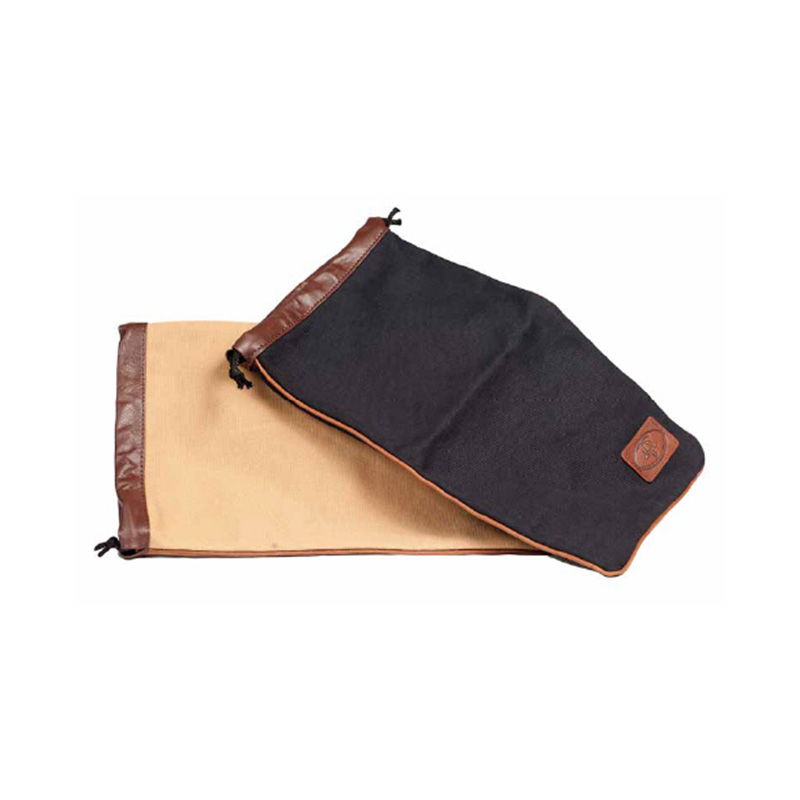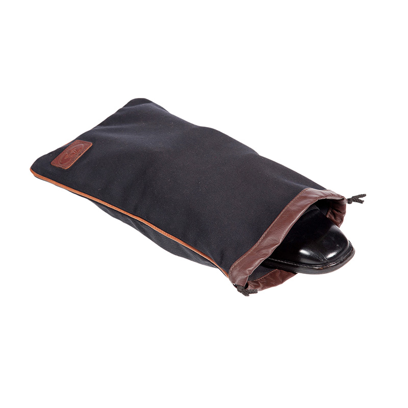An absolute must for all your shoes – robust canvas drawstring bag with leather trim for stowing your shoes separately or together: in and out of you luggage.